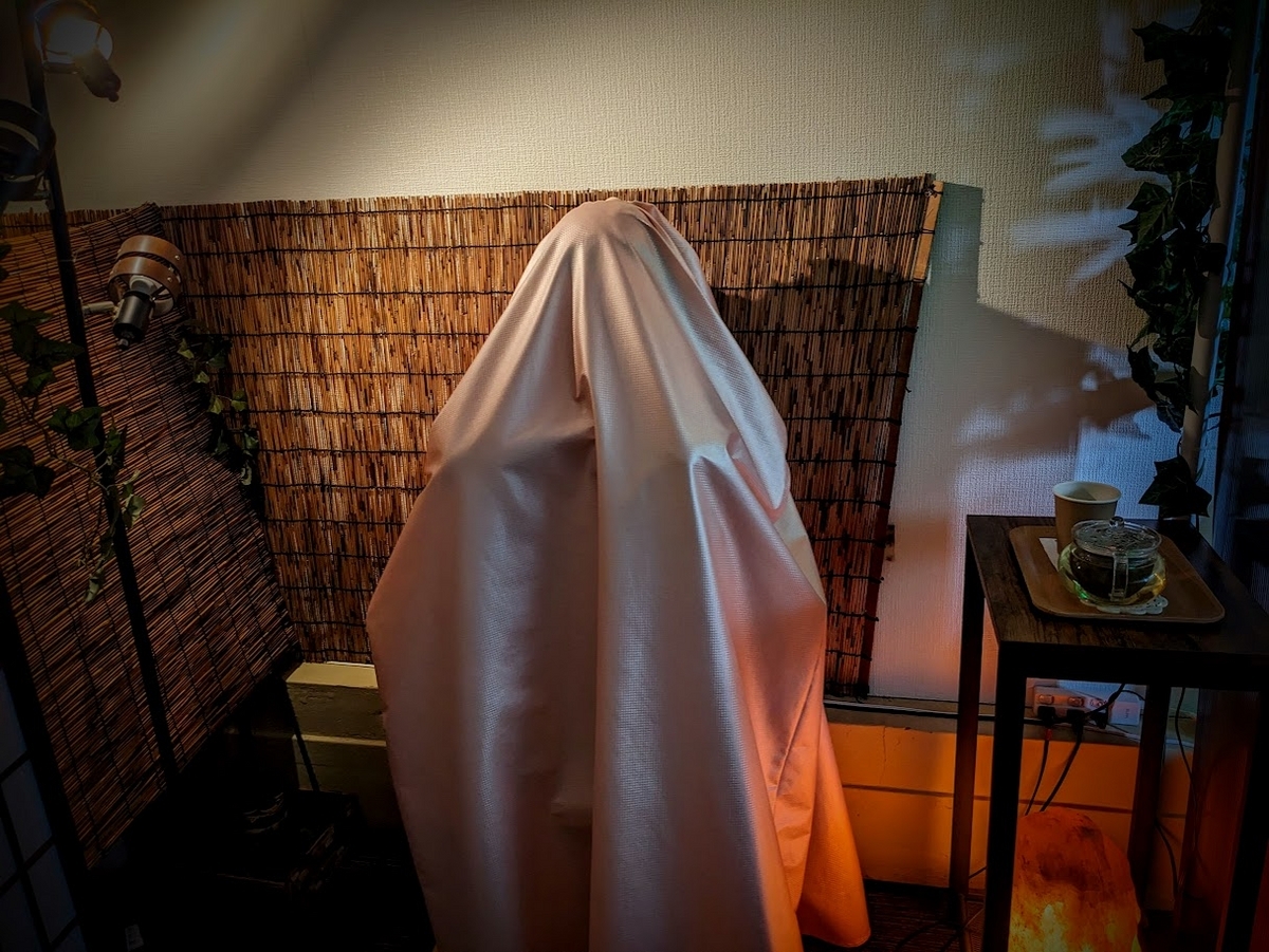 でも、写真のように、頭からすっぽりガウンを被って、よもぎやその他のハーブの